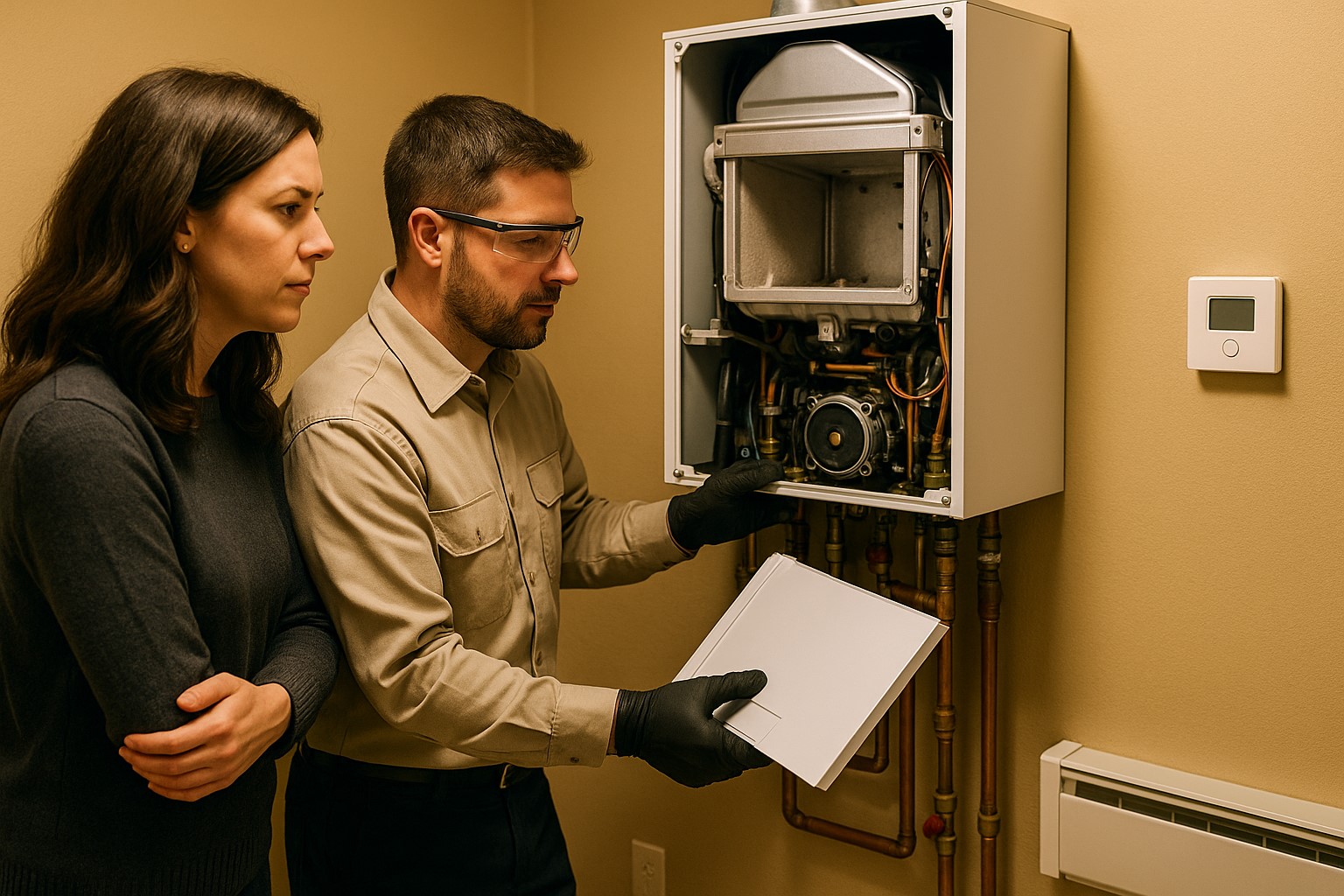 A professional tune‑up often includes combustion and safety control testing, venting/flue inspection and draft verification, leak checks at fittings, valves, and heat‑exchange surfaces, expansion tank, pressure relief, and circulator evaluations, system flush or descaling recommendations when buildup is present, and thermostat and control calibration for accurate temperature response.